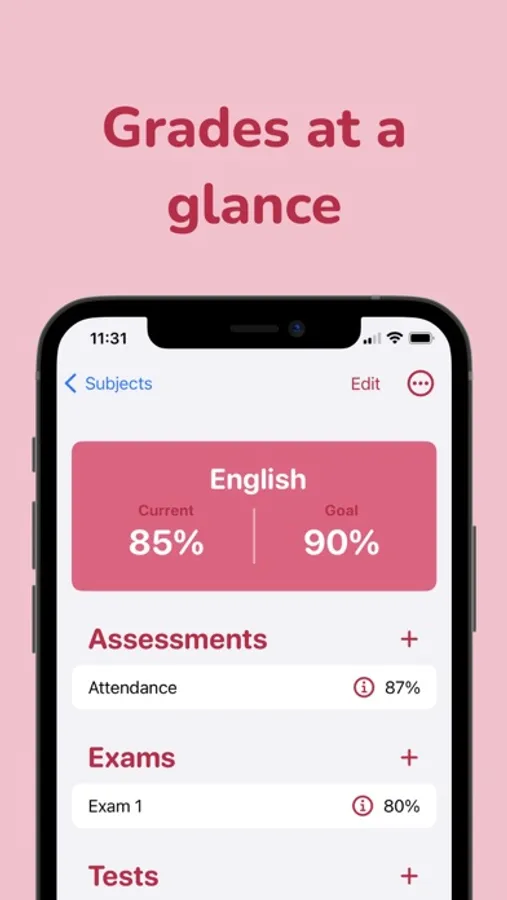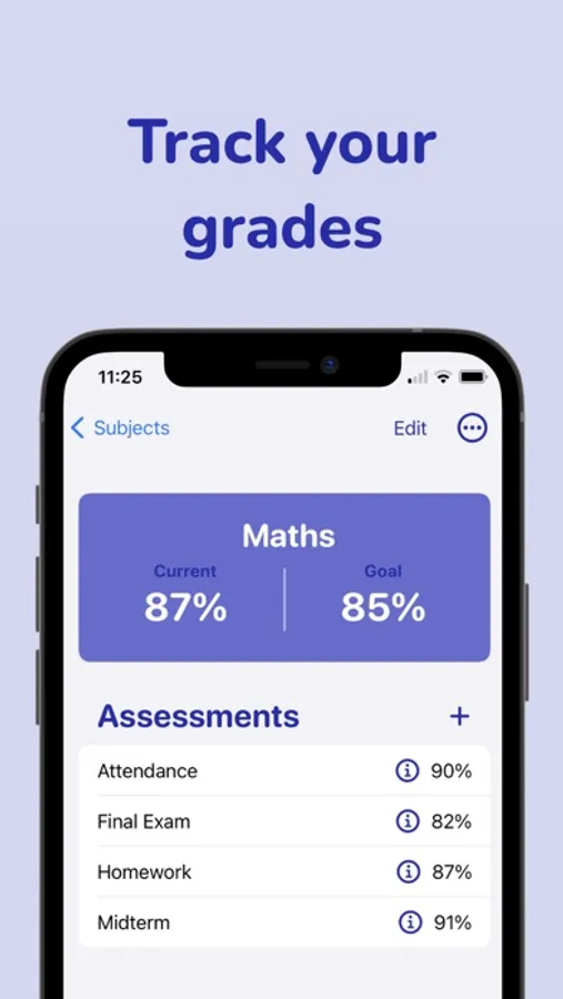 Grade Tracker calculates your grades and helps you know what you need on the next assessment to hit your grade targets.