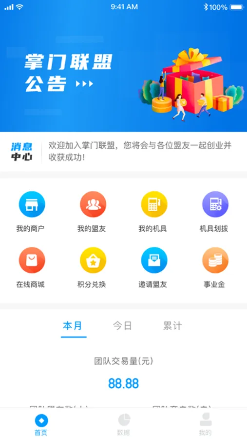 掌门联盟是专注于为用户提供一款便捷式查询个人交易明细的数据管理平台APP。同时也是一款深受广大用户喜爱的数据管理、商城类综合移动应用。为用户提供个人交易总数据,月度交易总数据等信息统计。