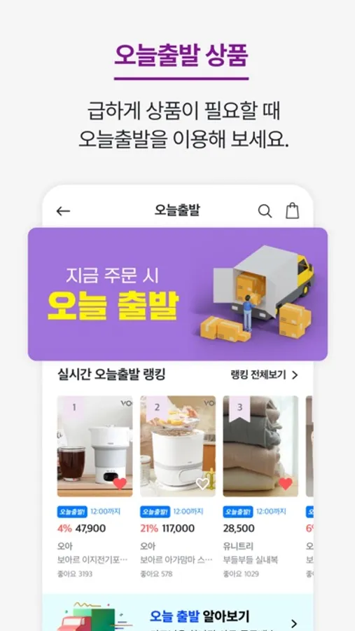 - 빨리 받아야 되는 상품은 오늘 출발 상품으로 해결해 보세요.