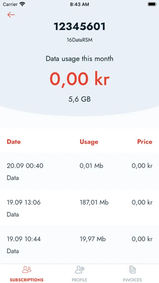 App for Min Side hos SMB Mobil. Hvor sluttbrukere kan kontrollere forbruk, bestille ekstra datapakke m.v.