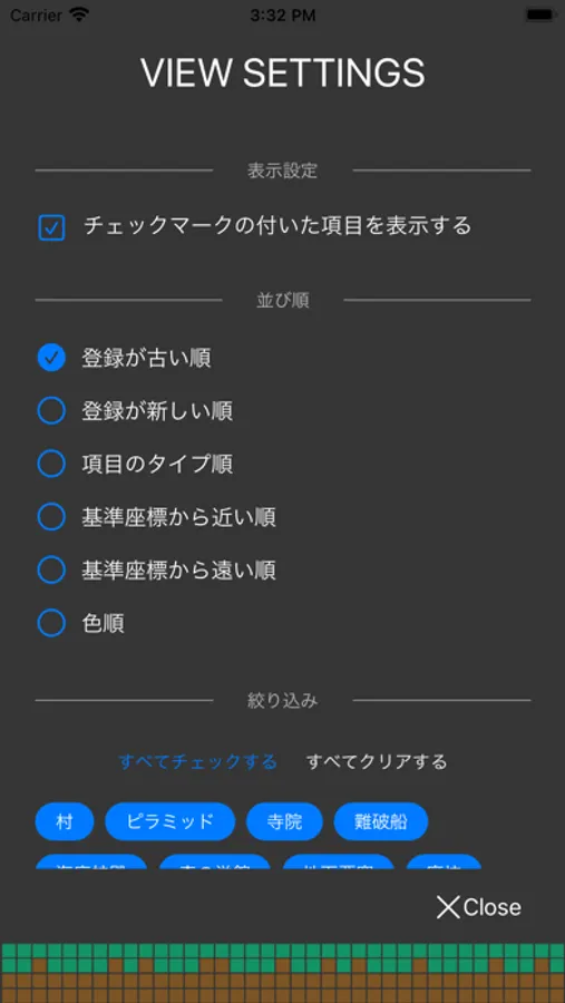 登録した座標は、カテゴリ順にソートしたり、