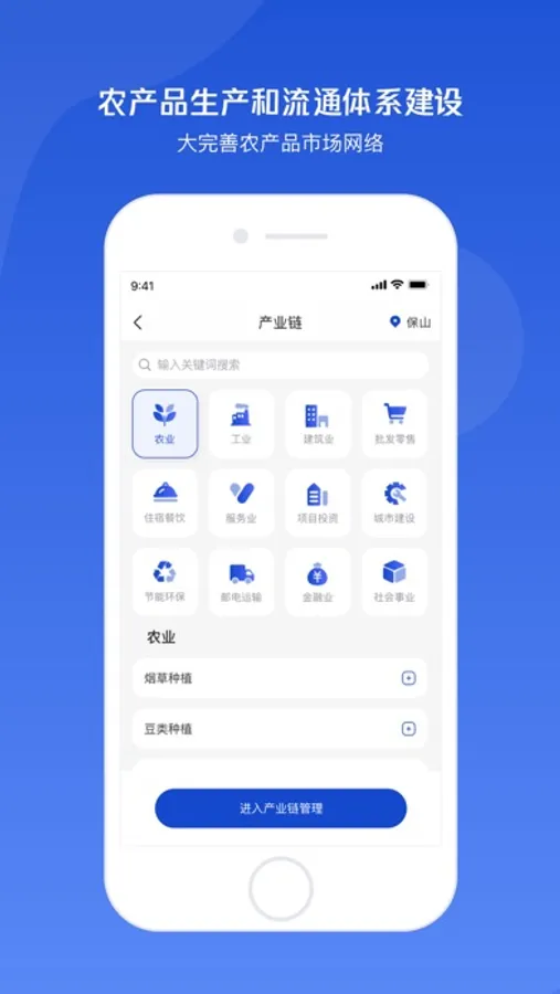 以产业为单元,以企业为着力点,对上下游供应商、渠道、资源、物流仓储进行多维度整合;从供应链出发,推进产业价值链升级重塑,助力企业构建新的交互联合模式,促进企业价值活动增长;优化产业资源分配,激发产业活力和创新力,助力保山传统产业升级和 新兴产业集聚。