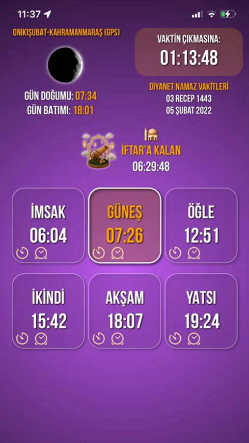 • Bulunduğunuz yere bağlı olarak namaz saati gösterir