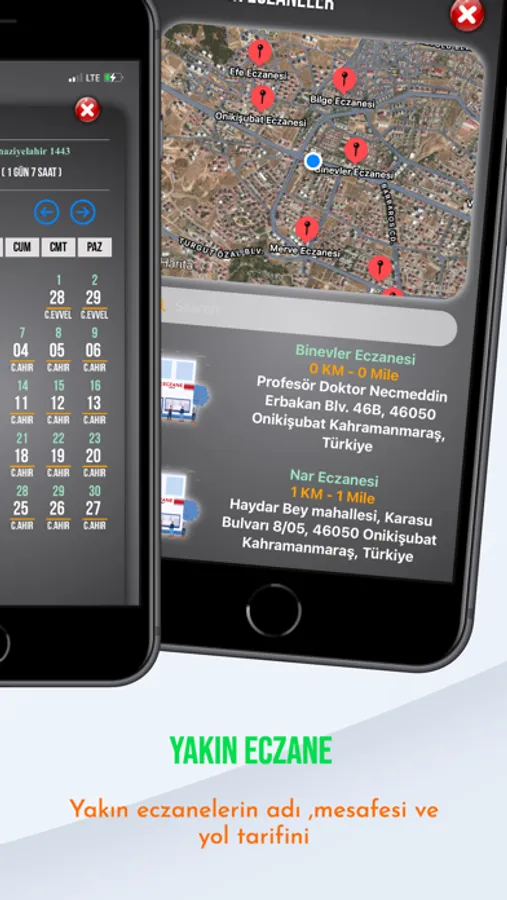 • Yakın camiler ve yakın eczanelere yol tarifi