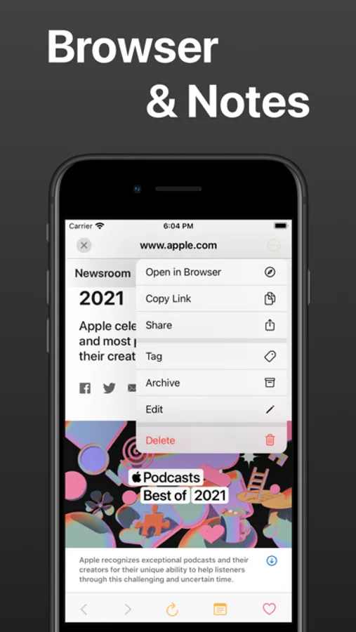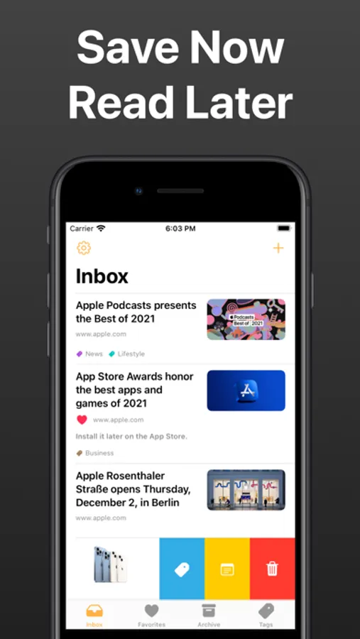 • Organize your bookmarks by adding them to your favorites or archiving them.