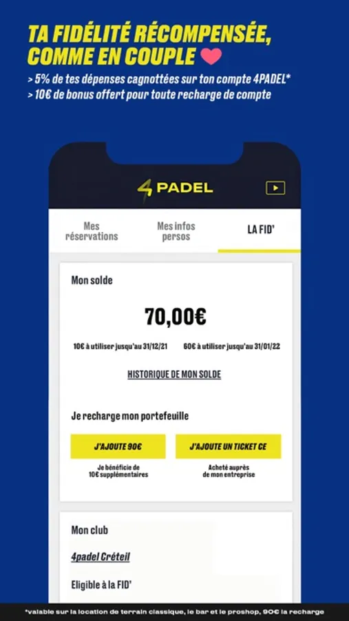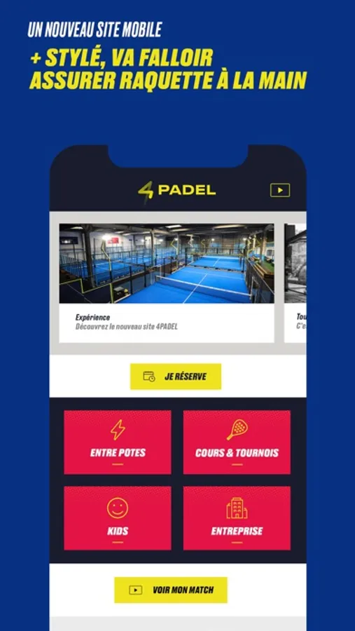 Moderne et simple d'utilisation, l’application 4PADEL t’accompagnera et te permettra de profiter pleinement de nos terrains: