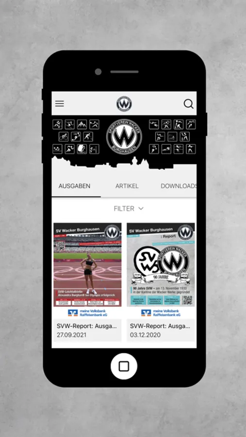 In der SVW-App findet ihr alle wichtigen News und Publikationen rund um den SV Wacker Burghausen e.V. mit seinen Abteilungen und Sondereinrichtungen. Ob brandaktuelle Neuigkeiten aus dem Vereinsleben, der vierteljährlich erscheinende SVW-Report oder auch die Abteilungs-Zeitschriften: All das erwartet euch in der SVW-App! Taucht jetzt ein in die vielfältige sowie bunte Sportwelt des SV Wacker Burghausen und ladet euch die App kostenlos herunter.