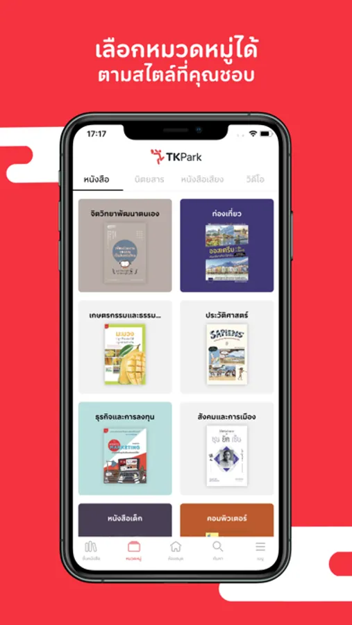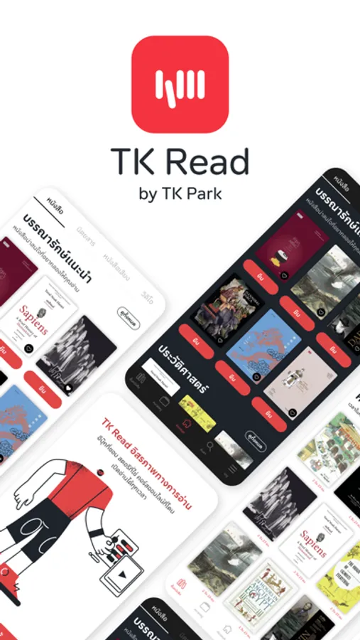 TK Read มีหนังสือในรูปแบบ eBooks มากมาย จากสำนักพิมพ์ชั้นนำของประเทศไทย มี Audiobooks ให้ฟังได้อย่างเพลิดเพลิน นิตยสารชื่อดังให้อัพเดทเทรนด์ใหม่ทุกเดือน และเรียนรู้ศาสตร์ใหม่ไปกับคอร์สออนไลน์หลากหลายความสนใจ