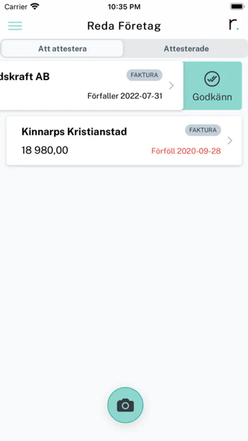 I Reda-appen attesterar du fakturor med en enkel swipe, och kan digitalisera alla de fakturor och kvitton som du fortsatt får i handen. Toppen, inte sant? Och med push-notiser igång missar du aldrig en faktura som måste attesteras.