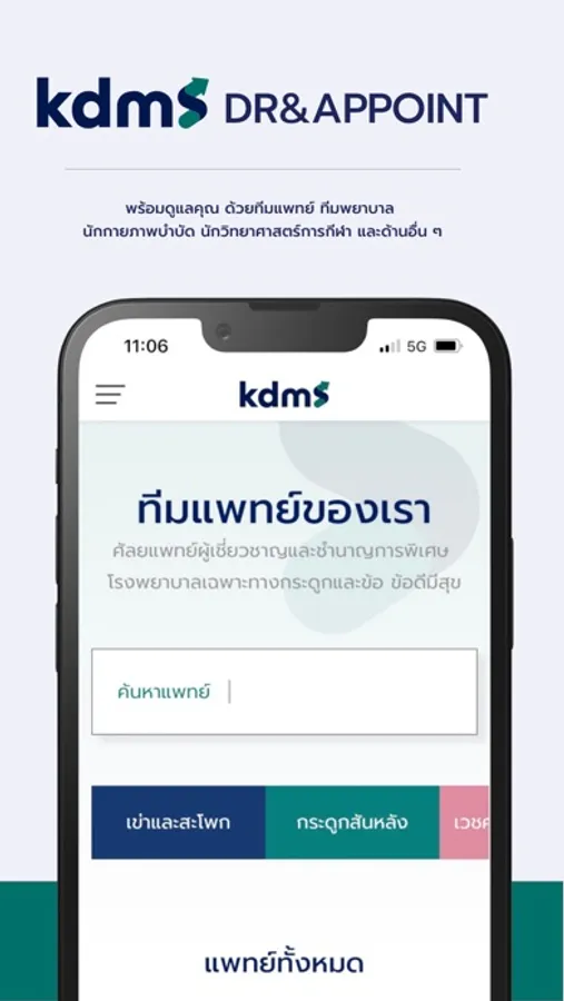 แอปพลิเคชันของโรงพยาบาลกระดูกและข้อ ข้อดีมีสุข kdms Hospital เพื่อสร้างประสบการณ์