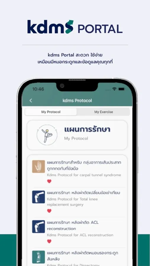 เข้าถึงคำแนะนำ และการดูแลรักษา ผลการผ่าตัด และผลเอกซเรย์ เชื่อมต่อกับ แผนการดูแลรักษาต่อเนื่องของ kdms ท่าบริหารด้วยตนเอง และการประเมินผลการรักษาด้วยตนเอง ผ่านทาง kdms Portal อันเป็นการตอบสนองด้วยการรักษาที่เยี่ยมยอดให้กับผู้รับบริการทางการแพทย์จากเรา