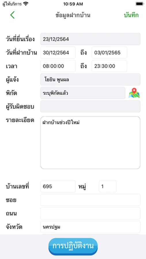 ระบบบริการสอบถามข้อมูล ฝากบ้าน และรายงานผลการฏิบัติงาน