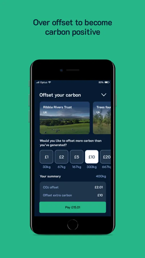 Karai is free to download and use, and you can pay to offset your emissions when you want to. You can even offset your carbon footprint to stay carbon positive.