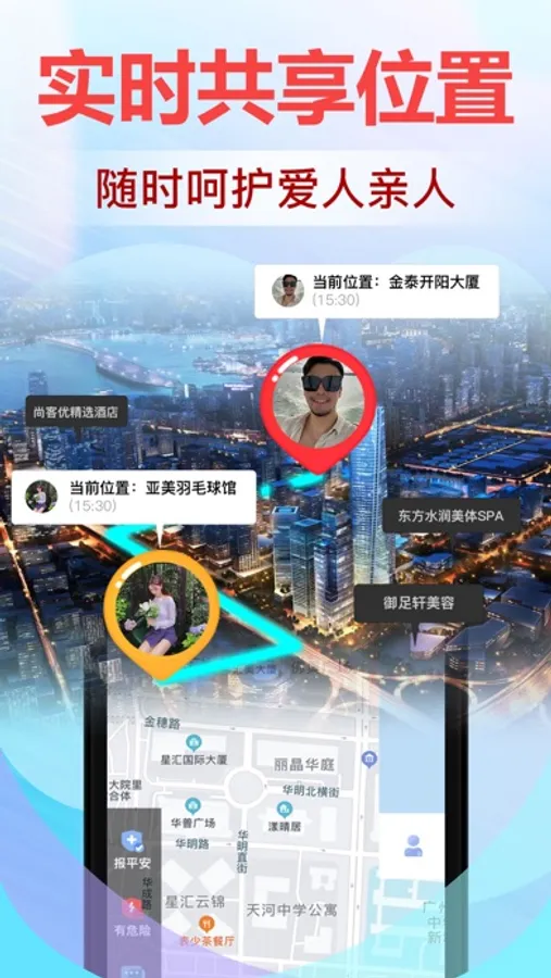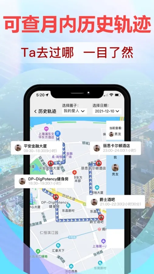 2、可以在地图上实时查看情侣、家人、朋友或者小孩任何你关心的人的实时位置