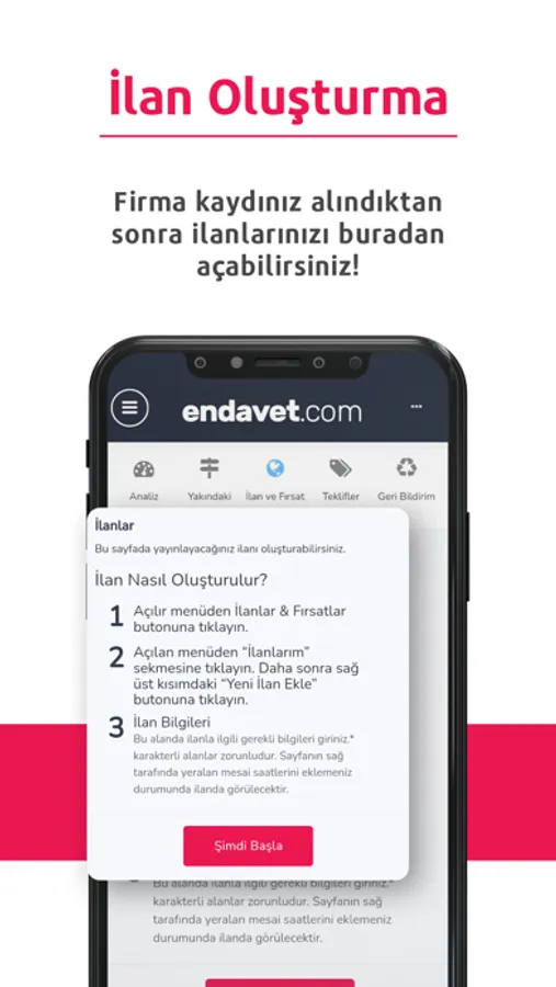 Sadece bilgilerinizi ve işlerinizi endavet.com üzerinden tanımlayarak ilgili kategorilerde listelenmeye başlayıp potansiyel müşterilerinizin internet üzerinden arayışlarında görünür hale gelme şansını yakalayabilirsiniz.