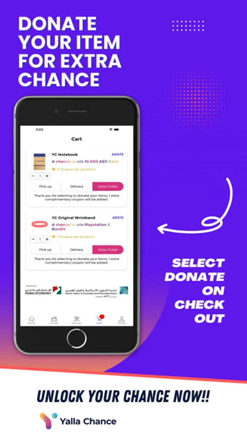 Yalla Chance is an e-commerce store that support the giving concept to people and society. Our compensation system is providing a rewarding coupon/s with each purchase you made from our active campaign that are time limited or quantity limited campaigns. Those coupons will give you a chance to win a luxurious prizes that might change your life. While we rewarding your your purchase with a complimentary coupon/s for a chance to win luxurious prizes, you also can reward the society and be part of this giving by donating your purchase and we will reward your generosity again by giving you an extra coupon. All our draw is regulated by the DED and local authority where the draw is happening.