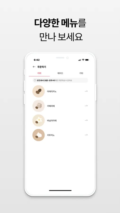 기다릴 필요 없이 다양한 메뉴를 쉽고 빠르게 주문하세요 :)