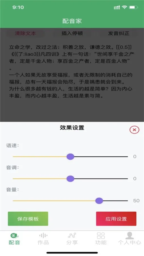 3、素材丰富:海量样音文案模板,优质背景音乐,打造专属于你的配音效果