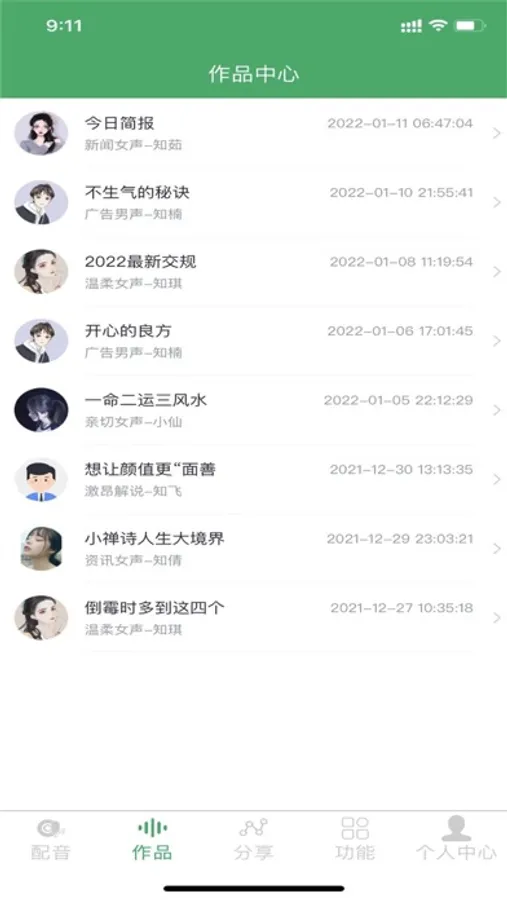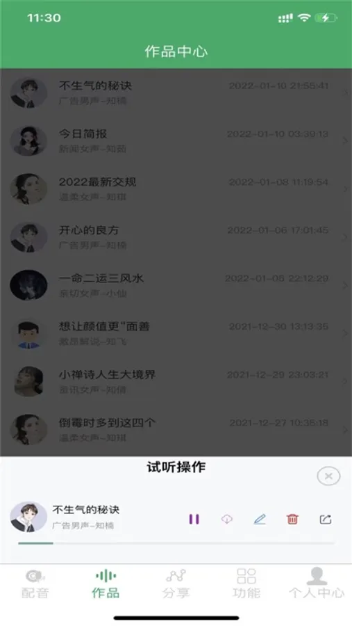 2、真人成品录音:海量真人成品录音可直接导出,风格多样,效果震撼。