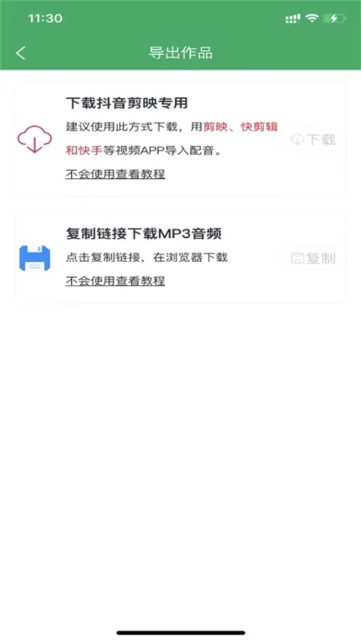 5、一键导出MP3:所有的音频文件都可以直接导出至手机,U盘,离线播放