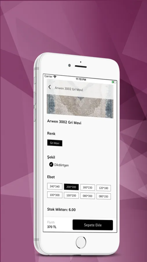 - Standart halılar için adet alanına sipariş vermek istediğiniz miktarı yazarak, kesme halılar için de siparişini vermek istediğiniz ürünün adet, kesme ve saçak tipi bilgilerini girerek sepetinize ürün ekleyebilirsiniz.