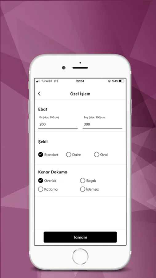 - Standart halılar için ürün adetini, kesme halılar için ürün adetini, kesme miktarını ve saçak tipini güncelleyebilir,