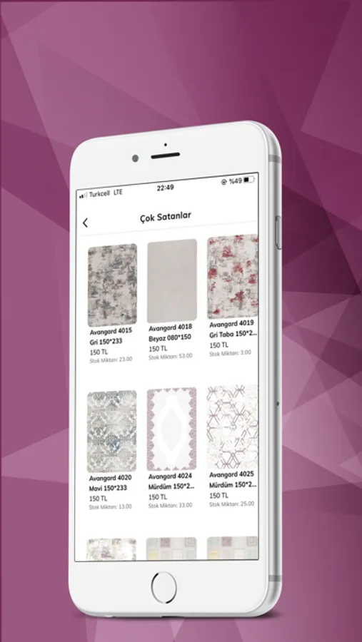 - Kesme halılarda metre alanına tıklayarak lot durumu görüntülenebilir,