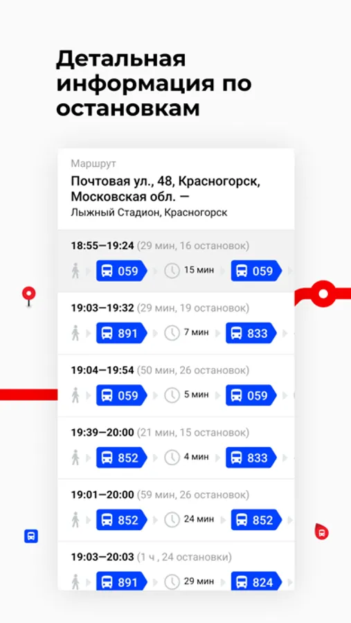 Приложение работает в пилотном режиме. Прямо сейчас доступна информация только по маршрутам АО «Мострансавто». Мы уже подключаем других перевозчиков.