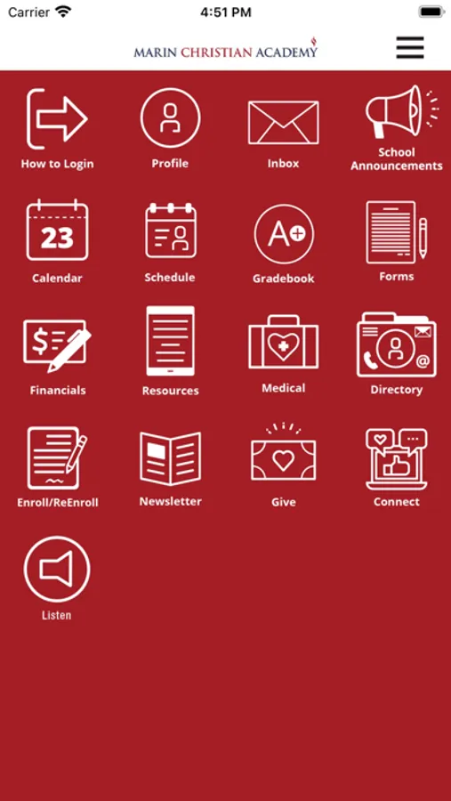 Welcome to the Family App for families of Marin Christian Academy in Novato, CA! This app is a one-stop-shop for our school community, with anytime, anywhere access to all the tools, content, and communications parents need to stay connected and engaged. School information available in one easy to access place includes Announcements, School Calendar, Student Grades, Family Accounting, Giving Options, and much more!