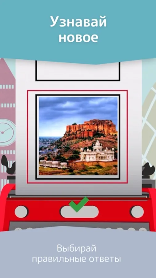Основная тема игр в нашем приложении - путешествия. Вы перемещаетесь по разным странам и городам, посещаете самые интересные и красивые места нашей планеты, узнаете новые факты и попутно проверяете свои знания.