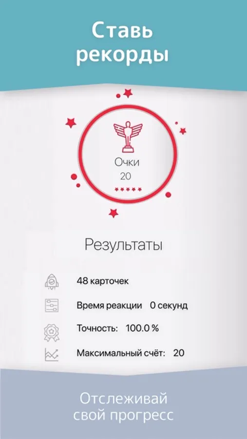 Успешно завершенная игровая сессия может принести игроку награды - медали за наилучший счет, время реакции, точность ответов и другие. Анализ имеющейся статистики успехов и неудач игрока позволит выявить его слабые стороны и усилить “тренировки” именно в этом направлении.