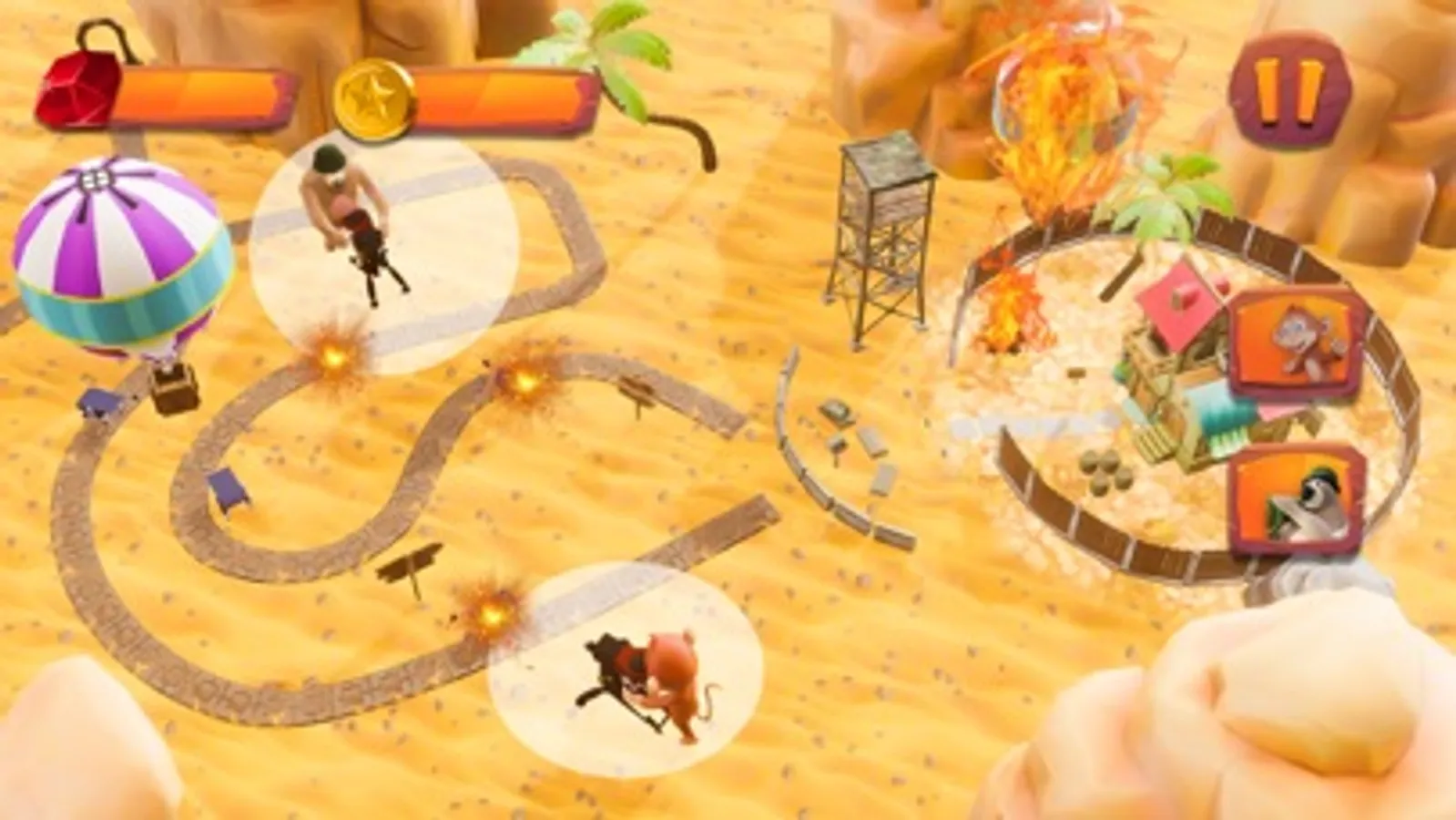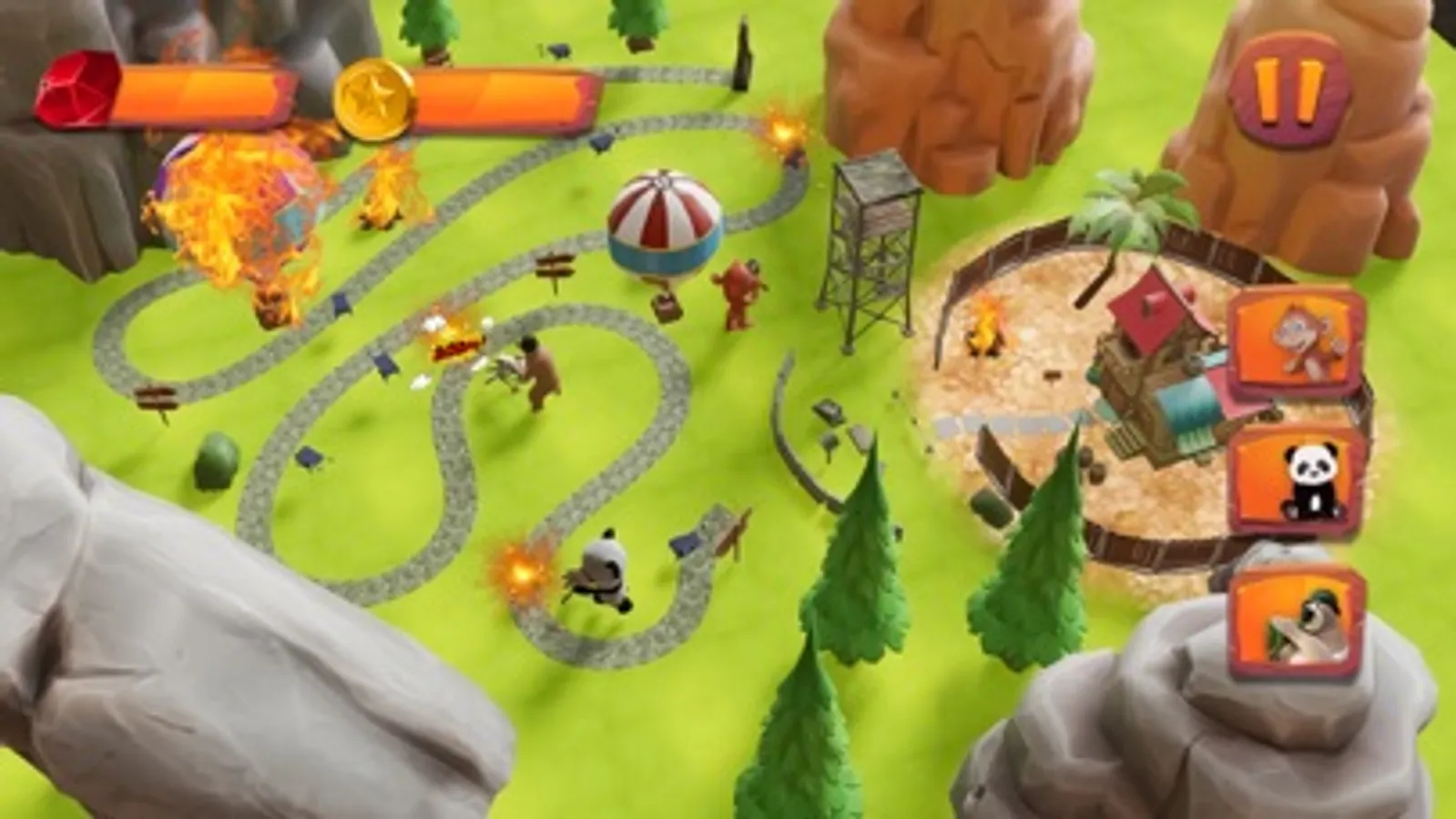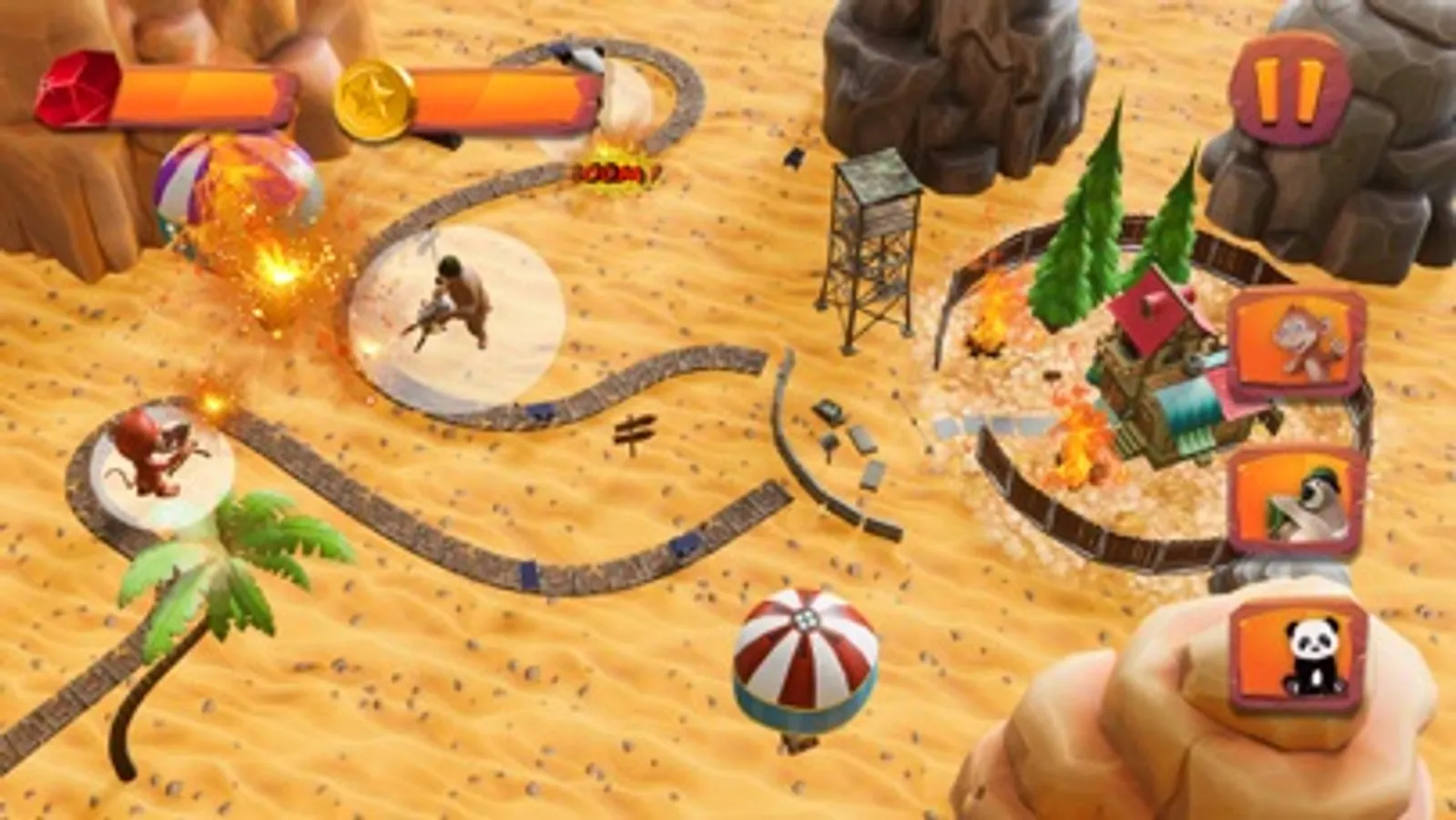 Ninja monkey balloon battles is a strategic game. Player will unlock the animals like monkey panda and bear to and will place them in the way of drones and hot balloons. They will shoot them and will save the town. Player need to save his town from that balloons and drones. Enjoy the cool 3d visual effects.