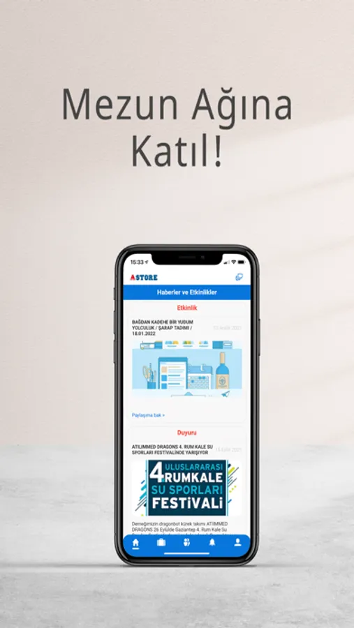 Dernek etkinlikleri uygulama içinde anasayfada yer alacak, tüm etkinliklerden uygulamayı indiren tüm mezunların haberi olacaktır.
