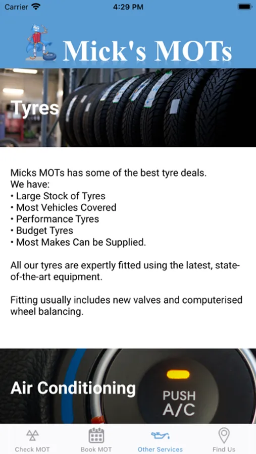 With our new app you can check your vehicle's MOT date as well as book in an MOT with us. Furthermore, the app has a list of services we offer and details of how to contact us.