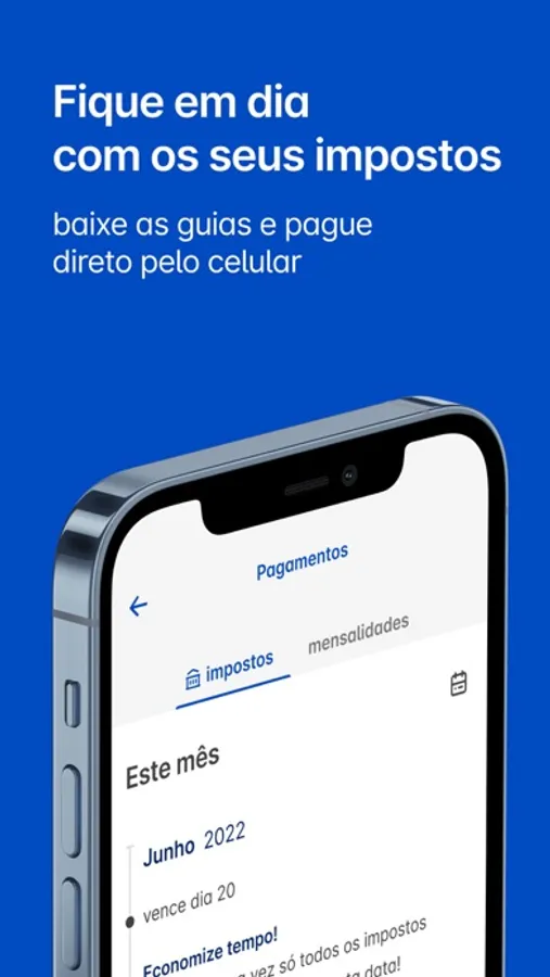 - Pagamento de impostos: mantenha os seus sempre em dia pagando através do app