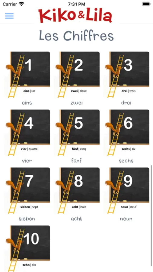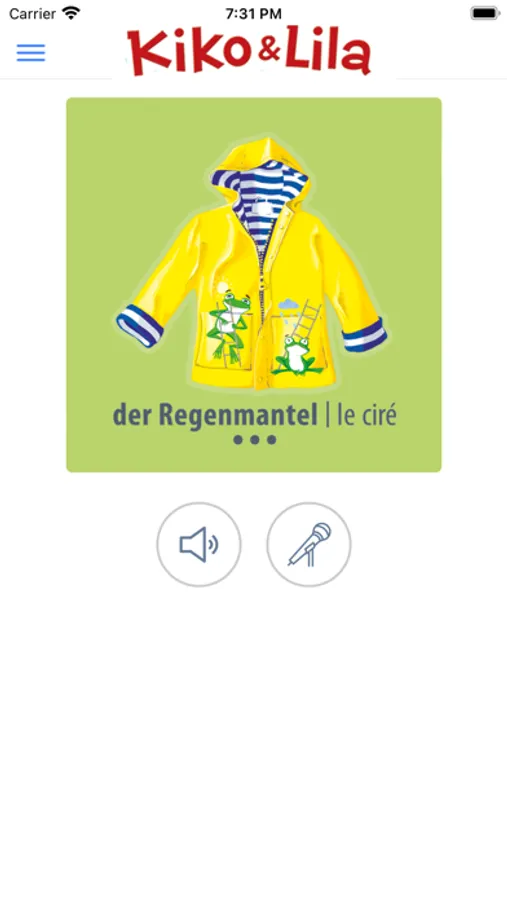 « Kiko & Lila » est une collection de jeux de société pour apprendre l’allemand tout en s’amusant.L’application est un outil d’accompagnement. Elle permet d’entendre des locuteurs natifs et detester votre propre prononciation.Dans le premier coffret, nos deux héros, Kiko, le petit écureuil un brin farceur et Lila, une petite fillecurieuse et créative, font leur valise. Ensemble il vous feront découvrir les vêtements, les couleurset les saisons en allemand.La répétition est certes le maître mot dans l’apprentissage d’une langue, mais grâce à une multitudede jeux dans ce coffret, les joueurs ne se lasseront pas si vite, nous l’espérons ! Et maintenant, vielSpaß beim Spielen mit «Kiko & Lila» !