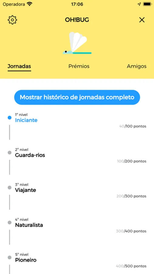 O Perfil do Utilizador apresenta inicialmente a Jornada, onde é visível o histórico de ações realizadas e Níveis de Pontuação alcançados pelo utilizador, assim como, os Prémios conquistados. É também no Perfil do Utilizador, que este encontra a secção de Amigos, onde é dada a possibilidade de enviar um convite, via Redes Sociais, a um amigo.