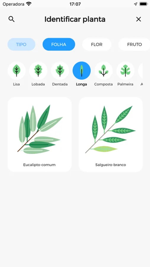 O método de identificação por filtros de características permite apresentar ao utilizador uma lista de resultados das plantas que se enquadram em cada padrão.