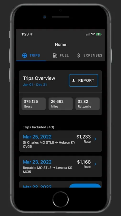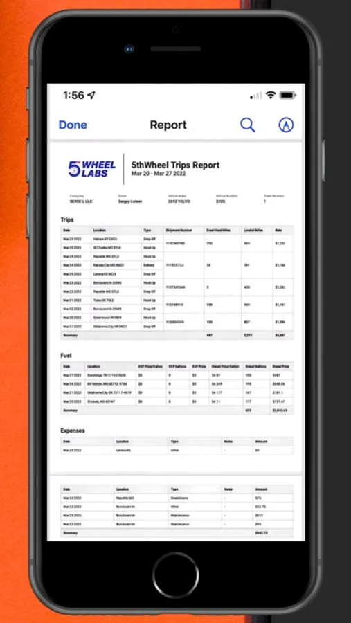 This App is great for owner operator truck drivers to track their gross income, total mileage and fuel spendings. It helps to analyze dollar per mile ratio and miles per gallon usage. The App collects all the receipts and trips with rate confirmations and bill of ladings. Keeping your trucking data in one place will help you to create an annual report for your office needs. It is also convenient tool for company truck drivers for sending driver's weekly report with all the mileage and fuel expenses to a carrier company.