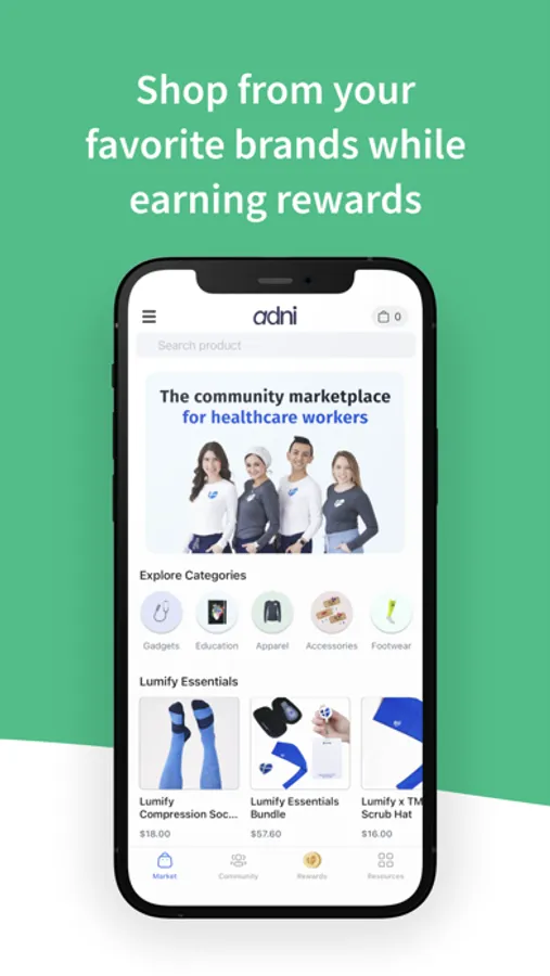 Meet Adni: the one-stop-shop for healthcare workers. We've brought everything a healthcare worker needs into ONE app: scrubs, apparel, accessories, discounts, community, wellness resources, and more.