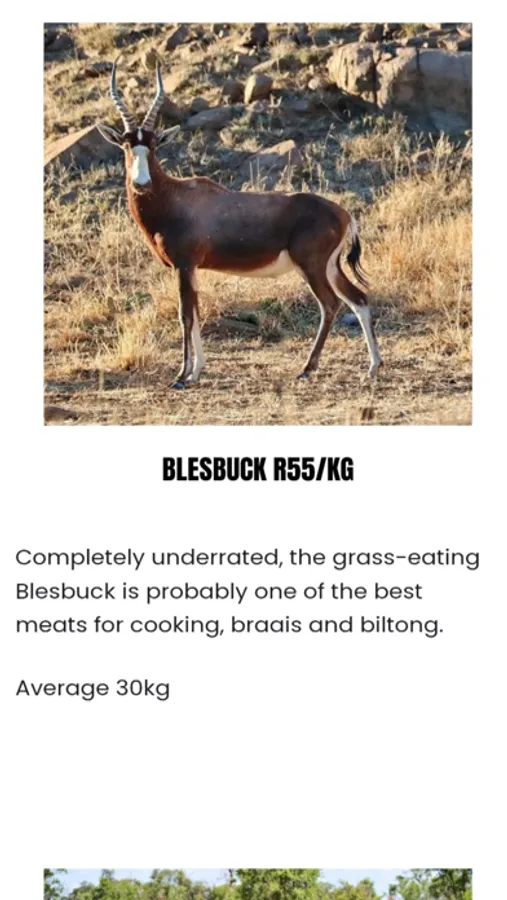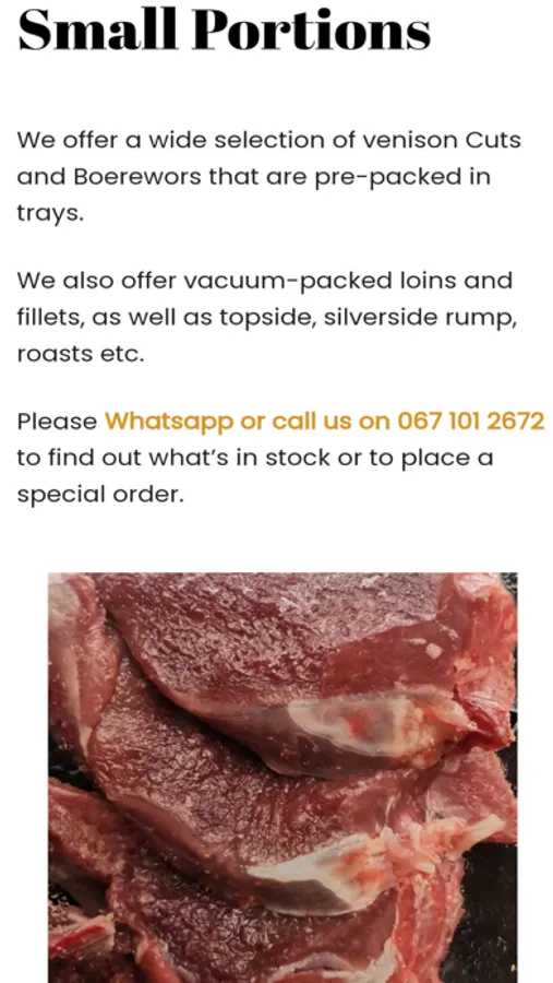 We sell wild African Game Meat: Impala, Kudu, Warthog, Crocodile, Porcupine and more!