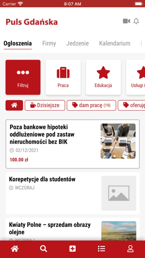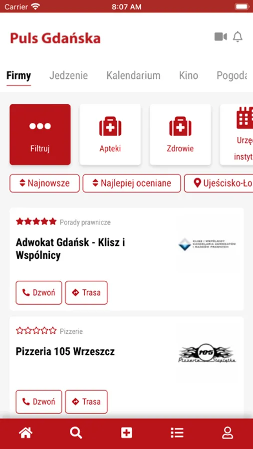 W aplikacji znajdziesz bogatą bazę firm i instytucji z terenu Gdańska. W zakładce ogłoszenia można znaleźć anonse, oferty kupna i sprzedaży oraz oferty pracy.