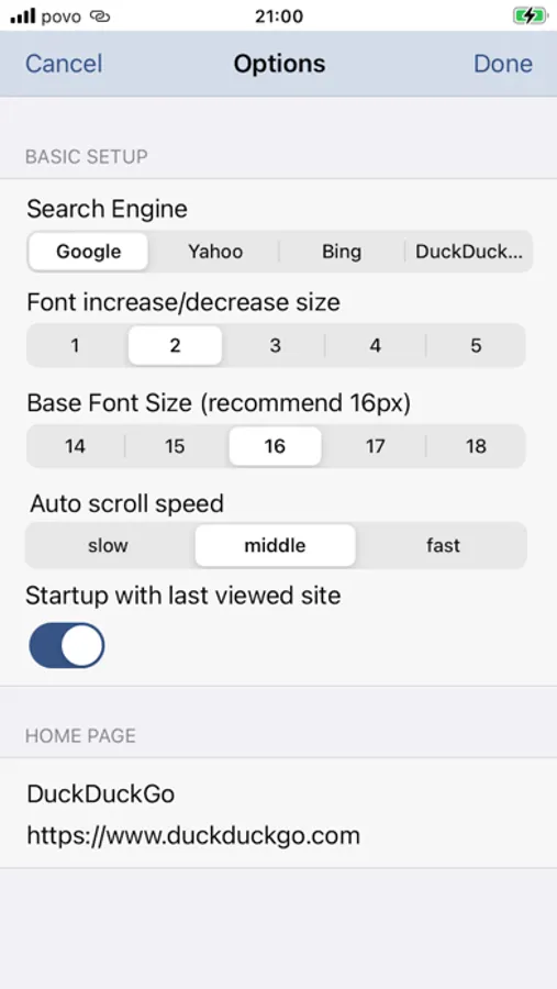 Font zooming makes web page view easier for presbyopia users. Auto scrolling both up and down makes easier web page browsing.