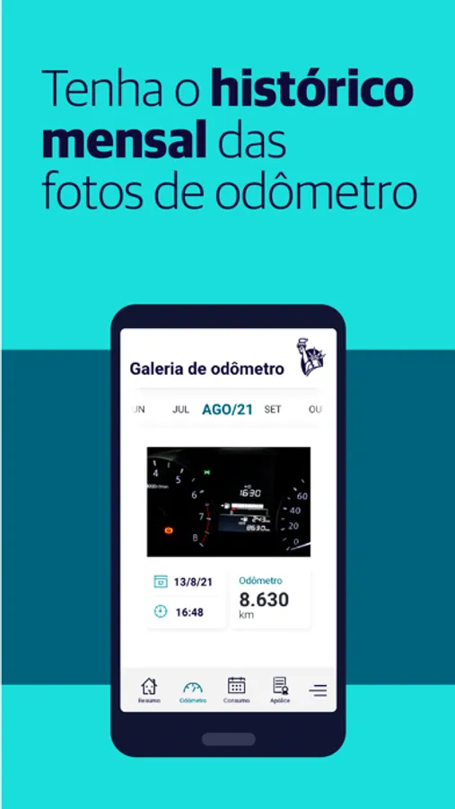 - Acesse o histórico de quilometragem, valores pagos e economia.
