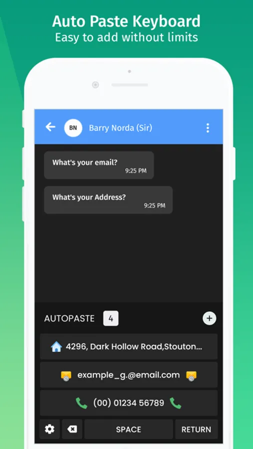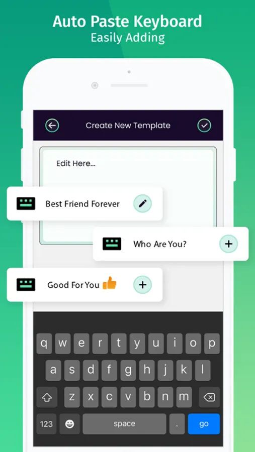 This is a is a free custom paste keyboard app that helps users easily fill template text automatically and directly from their keyboard without having to switch to any other app by automatically pasting text or photos using keyboard phrases and shortcuts.