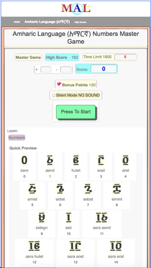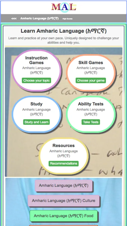 Play Amharic Learning Games, Study and Learn with online Flash cards, Take Amharic Tests