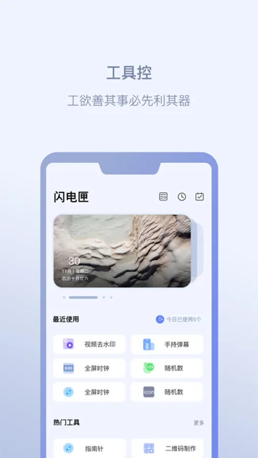 自从用上了闪电匣,你不需要再安装一些不常用的工具App,手机会变得更纯净、空间更节省。