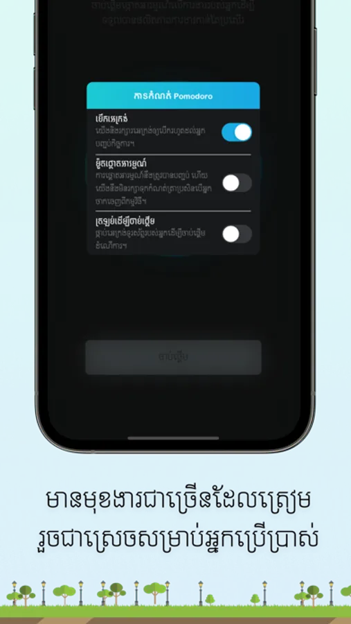 Pdoat: Pomodoro Timer is a timer management application that encourages you to work with your time more efficiently - with the provided methods, and is also the first Pomodoro timer app in Cambodia. It is fully translated into both Khmer and English languages.