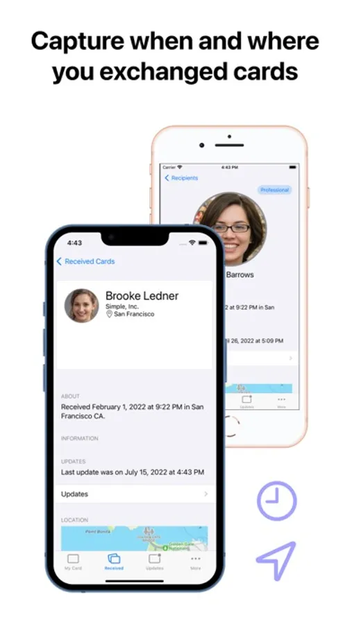 Context is key - When you exchange your card, we record the date and time your card was received. For QR code , NFC tags, and Air Drop exchanges, we also mark your location, if the recipient allows location permission.