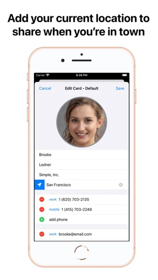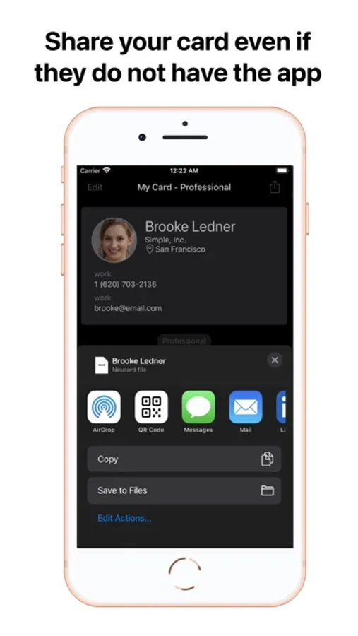 Sharing is easy - Use a QR code, NFC tag, Air Drop, or send your neucard via email, link, or text. It works everywhere even if the other person doesn't have the app.